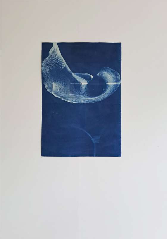 Fragment_9209, 2023, tirage en cyanotypie d’après prise de vue numérique d’un fragment de sculpture immergée en mer réalisée par Guillaume Castel, tirage unique sur papier Arches 300g, 33,5 x 33,5 cm.